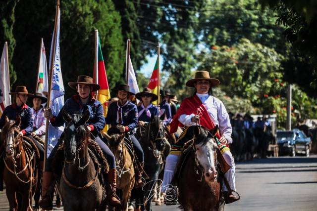 A programação teve início no sábado (28/03), com credenciamento e saída às 14h do CTG Tropeiros do Buricá, percorrendo o centro da cidade em um desfile que levou tradição e cultura à comunidade, seguindo em direção ao Balneário Cascatinha, em Caúna.