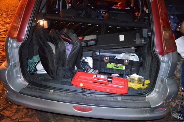 Três elementos estavam no veículo Peugeot da cidade de Rio do Sul, Santa Catarina, em revista ao veículo foram encontrados diversos objetos que incriminavam os suspeitos.