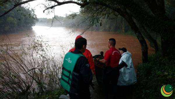 A equipe de mergulhadores do Corpo de Bombeiros de Passo Fundo não pode continuar as buscas devido a forte correnteza no rio Jacuí e serão retomadas na manhã de sábado.