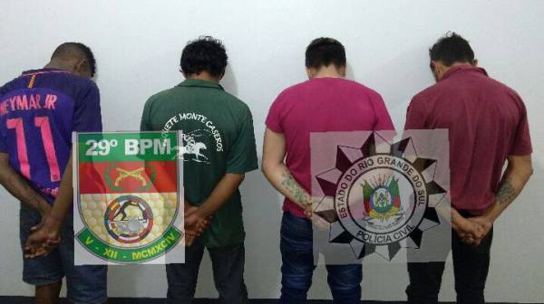 O.F.S., 33 anos de Ijuí, M.F.S., 22 anos de Ijuí, Q.R.L.R., 18 anos de São Leopoldo e A.F.S., 18 anos de Cruz Alta estão sendo autuados em flagrante e serão posteriormente encaminhados à Penitenciária Modulada de Ijuí.