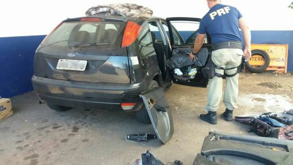 Por volta das 11h30, durante fiscalização de velocidade, foi dada ordem de parada para um Ford/Focus emplacado em Cruz Alta, que não obedeceu e iniciou fuga. No perímetro urbano de Cruz Alta, o veículo foi abordado e durante a vistoria no seu interior, escondido nos cartões de porta, foram encontrados diversos pacotes de anabolizantes contrabandeados do Paraguai