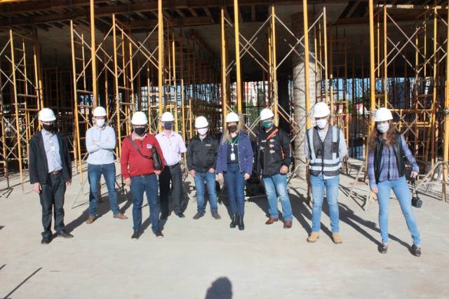 Acompanharam as visitas os engenheiros Thales Santos, responsável da obra pela construtora Anodora e Matheus Schopf, engenheiro que gerencia a obra pelo Sicredi, da EME Arquitetura.