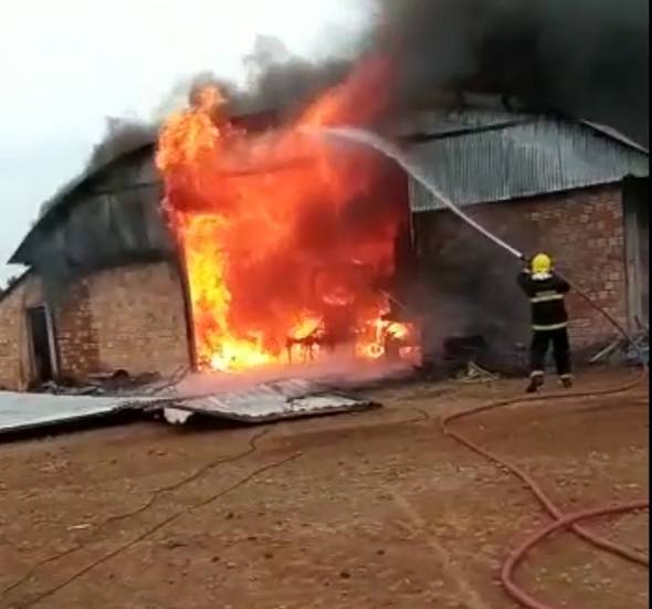 Registro é do momento que o Corpo de Bombeiros faz o serviço de rescaldo no galpão atingido, e pode-se perceber os destroços de pelo menos duas colheitadeiras, um caminhão e um trator, entre outros implementos, maquinários e demais utensílios.