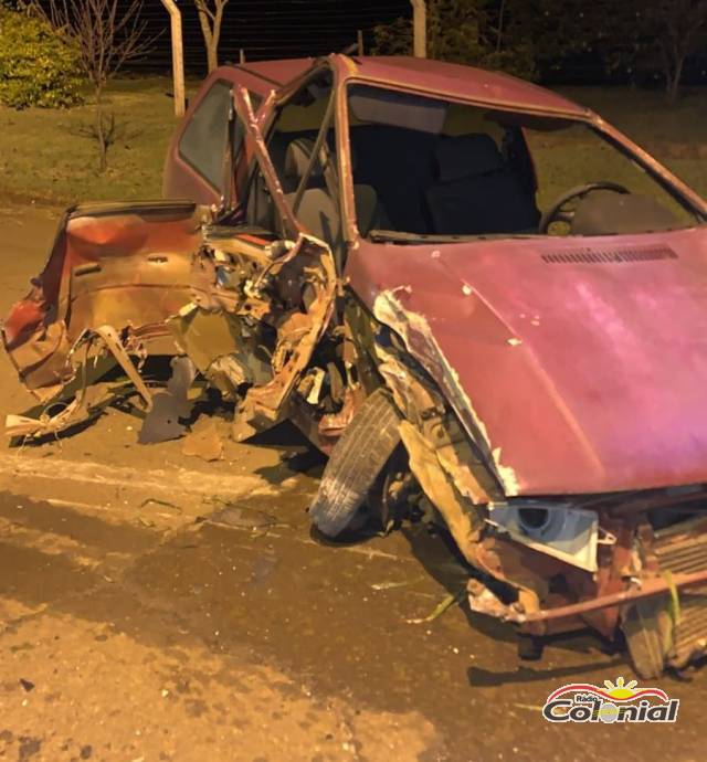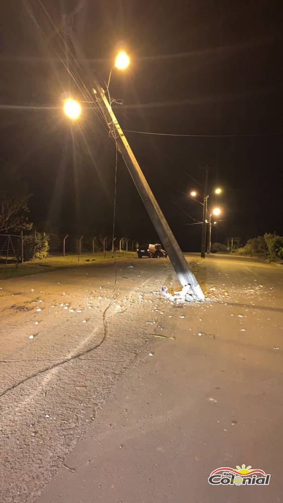 O condutor de um automóvel Fiat Uno, emplacado em Santa Rosa, bateu o veículo contra dois postes de concreto da rede de energia elétrica, localizado no centro do prolongamento da Av. Senador Alberto Pasqualini. Antes de bater contra os postes o veículo foi conduzido sobre os canteiros do trevo da Pica-Pau.